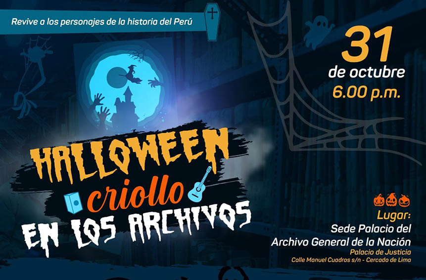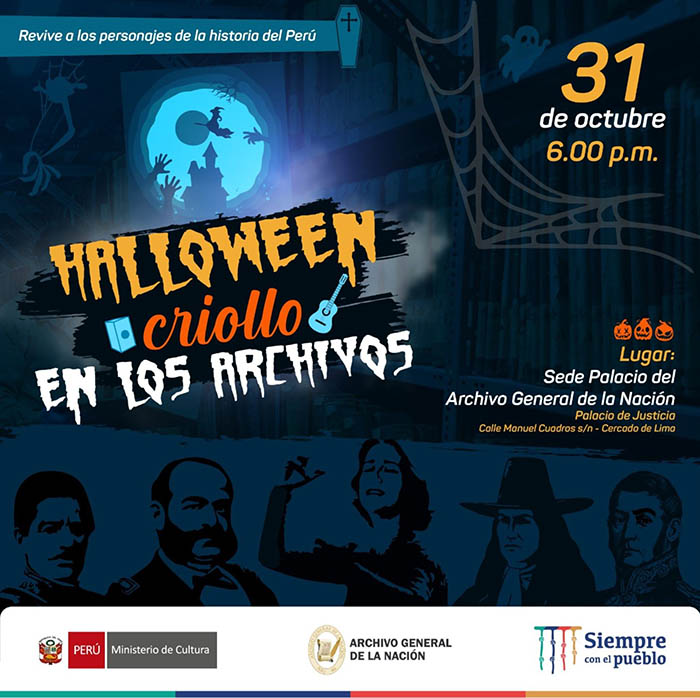 En la noche de Halloween y la Canción Criolla, el Archivo General de la Nación (AGN) presentará este lunes 31 de octubre personajes de la historia del Perú, para que puedan interactuar y contar pasajes importantes de sus vidas al público asistente.