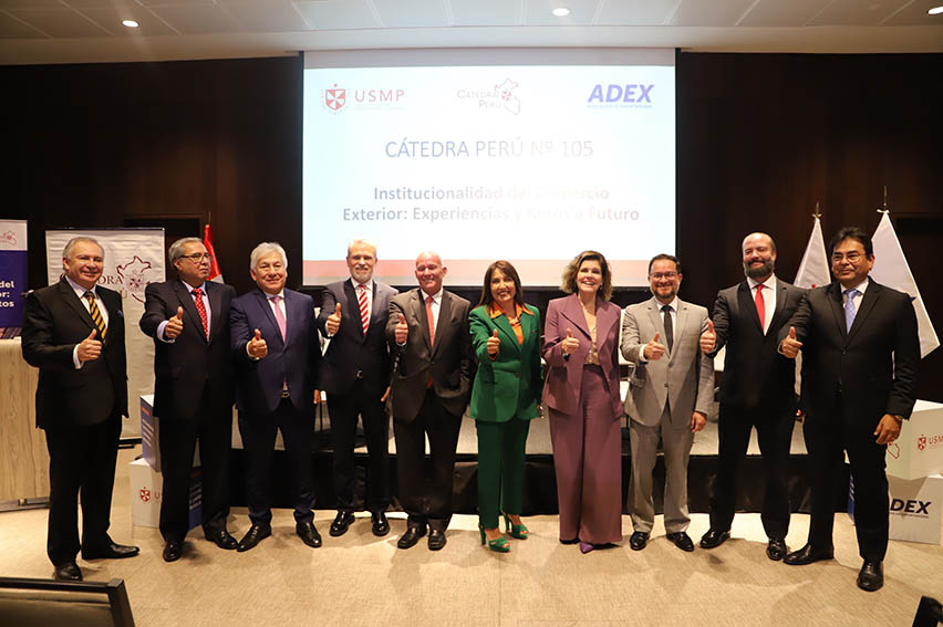 En el certamen organizado por la Asociación de Exportadores (ADEX) y la Universidad San Martín de Porres y que contó con la participación del presidente del gremio, Julio Pérez Alván y el vicerrector Académico de la USMP, Raúl Bao García, las exautoridades públicas también pidieron manejar prolijamente las relaciones internacionales, defender los Tratados de Libre Comercio y los avances alcanzados en los procesos de integración como la Alianza del Pacífico y la Comunidad Andina, sin caer en virajes ideológicos ni intereses subalternos grupales o individuales.