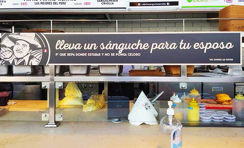 “Lleva un sánguche para tu esposo, p´ que sepa dónde estabas y no se ponga celoso”, decía el anuncio que publicó «La Lucha Sanguchería» en el 2021 en su local de El Polo. La frase causó rápidamente indignación en redes sociales.