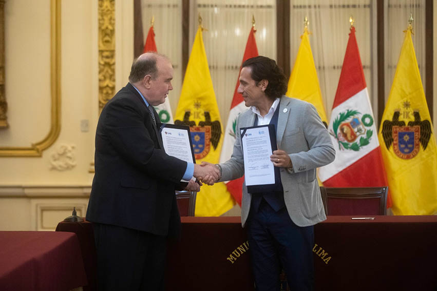 El alcalde de Lima, Rafael López Aliaga, a nombre de la Municipalidad de Lima, y el Programa Mundial de Alimentos firmaron un convenio que constituye un importante mecanismo de articulación y apoyo para una población de escasos recursos económicos como las ollas comunes y personas en situación de vulnerabilidad de Lima Metropolitana.