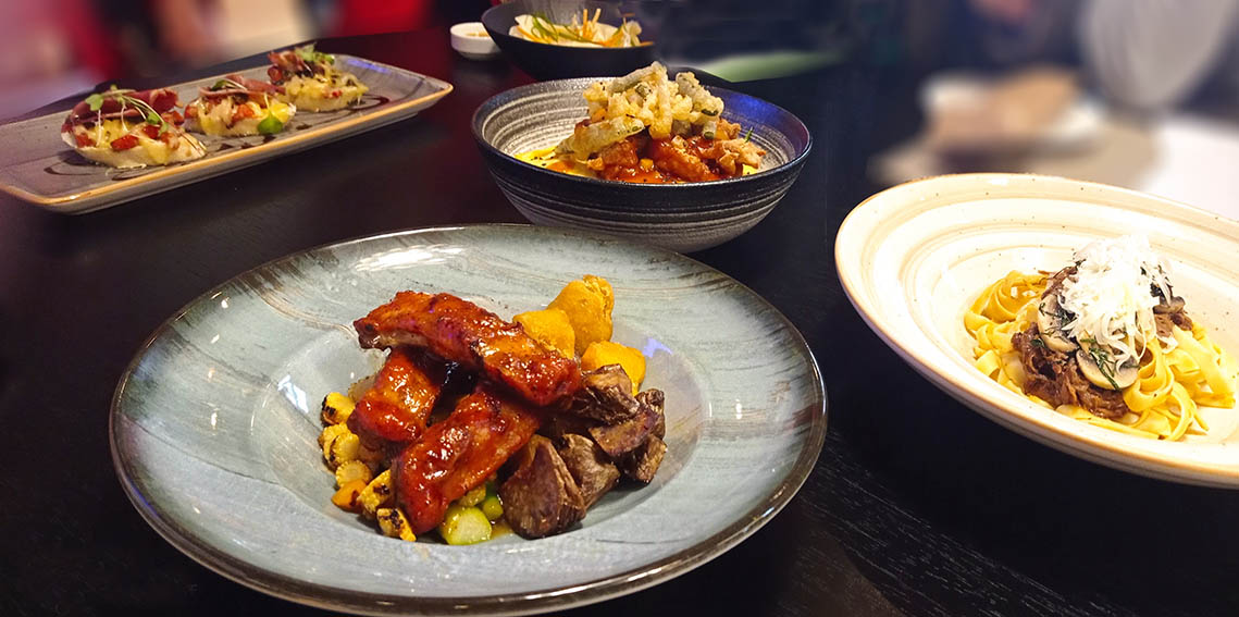 En lo referente a plato de fondo usted puede elegir: Western Ribs bbq c/verduras estofadas glaseadas, Ragú de cola de buey con fetuccini portobellos, setas y champiñones y Tipakay con tempura de verduras y arroz frito.