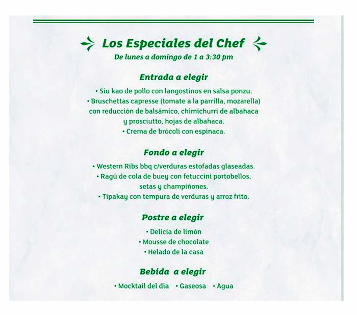 Su Chef Ejecutivo, Edward Torres manifestó que hubo un requerimiento para elaborar nuevos especiales (Nuevos Platos) que estarán incluidos en la Carta. “Son presentaciones modernas que incluyen productos locales y van de acuerdo a la estación (Invierno. Son tres entradas, tres platos de fondo y tres variedades de postres)” explicó Torres.