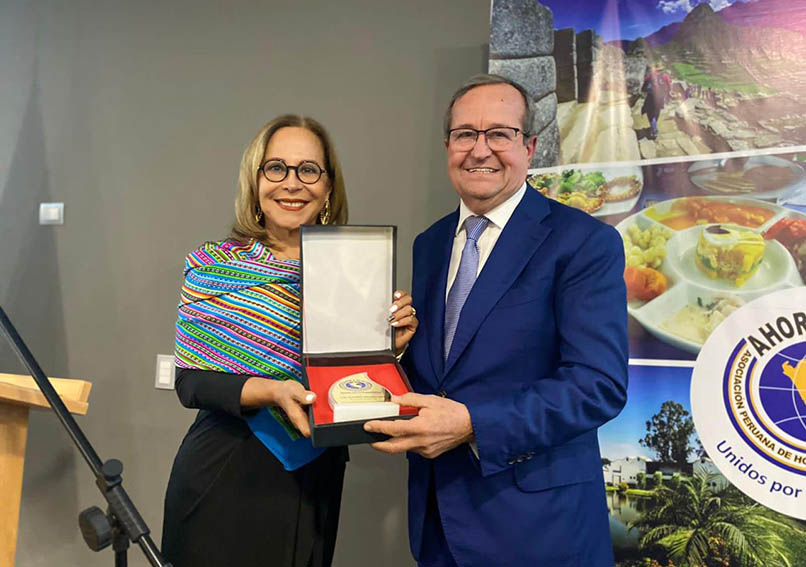 Lucho Molina, alcalde de Miraflores, fue distinguido por la Asociación de Restaurantes, Hoteles y Afines del Perú (Ahora-Perú) por su contribución a la reactivación del sector durante la pandemia. Fue durante una reunión del gremio turístico realizado en un establecimiento de hospedaje de San Isidro.