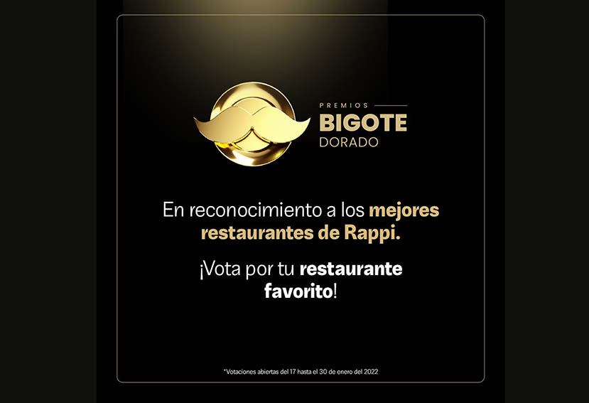 Lima, enero de 2022.- Por primera vez, Rappi realiza su Premio Bigote Dorado en Perú, que busca reconocer la labor de los mejores Restaurantes a través del canal Delivery, subsector que solo en junio del año pasado, según el INEI, tuvo un crecimiento interanual de 224,59 puntos porcentuales.