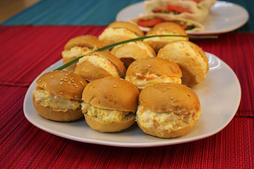 Para esta receta se necesitará 15 petipanes. Primero mezclar ½ pechuga de pollo cocida y picada, ramitas de culantro finamente picadas, una cebolla blanca picada en cuadraditos, media zanahoria cocida cortada finamente, 4 cucharadas de mayonesa, ½ sobre de Doña Gusta® Gallina, unas gotitas de limón y una pizca de sal, pimienta y AJI-NO-MOTO® al gusto. Revolver todo, rellenar los petipanes y a degustar.