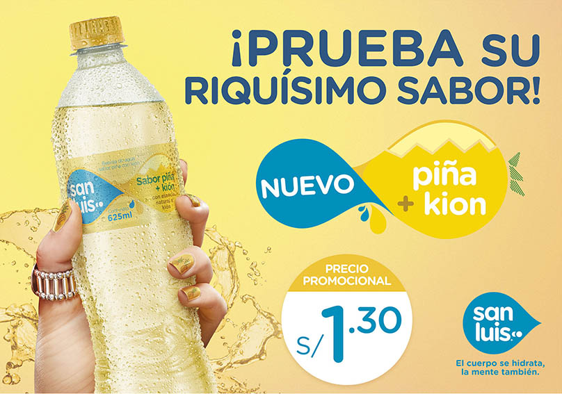 - El nuevo San Luis sabor piña + kion ya se encuentra a la venta en todas las bodegas y supermercados a un precio promocional sugerido de S/1,30.